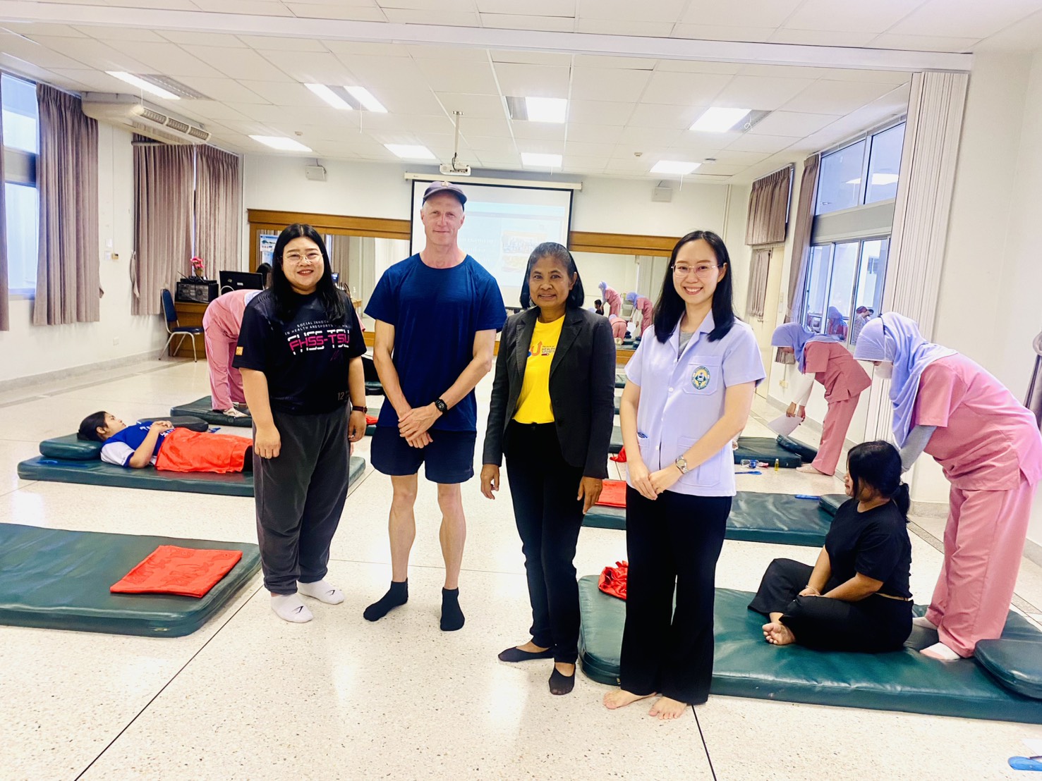 วันที่ 29 กันยายน 2568 หลักสูตรการแพทย์แผนไทยบัณฑิต คณะวิทยาการสุขภาพและการกีฬา มหาวิทยาลัยทักษิณ วิทยาเขตพัทลง นำทีมโดย ผศ.ดร.ยมล พิทักษ์ภาวศุทธิ อาจารย์ผู้รับผิดชอบรายวิชาหัตถเวชกรรมไทย 2 พร้อมทั้งคณาจารย์ในรายวิชา และนิสิตหลักสูตรการแพทย์แผนไทยบัณฑิต ชั้นปีที่ 2 จำนวน 38 คน ให้บริการนวดรักษา เพื่อส่งเสริมสุขภาพบุคลากร และประชาชนทั่วไป ที่มีอาการทางระบบกล้ามเนื้อ โดยไม่มีค่าใช้จ่าย ณ ห้อง วสก 1202 ชั้น 2 คณะวิทยาการสุขภาพเเละการกีฬา มหาวิทยาลัยทักษิณ วิทยาเขตพัทลุง