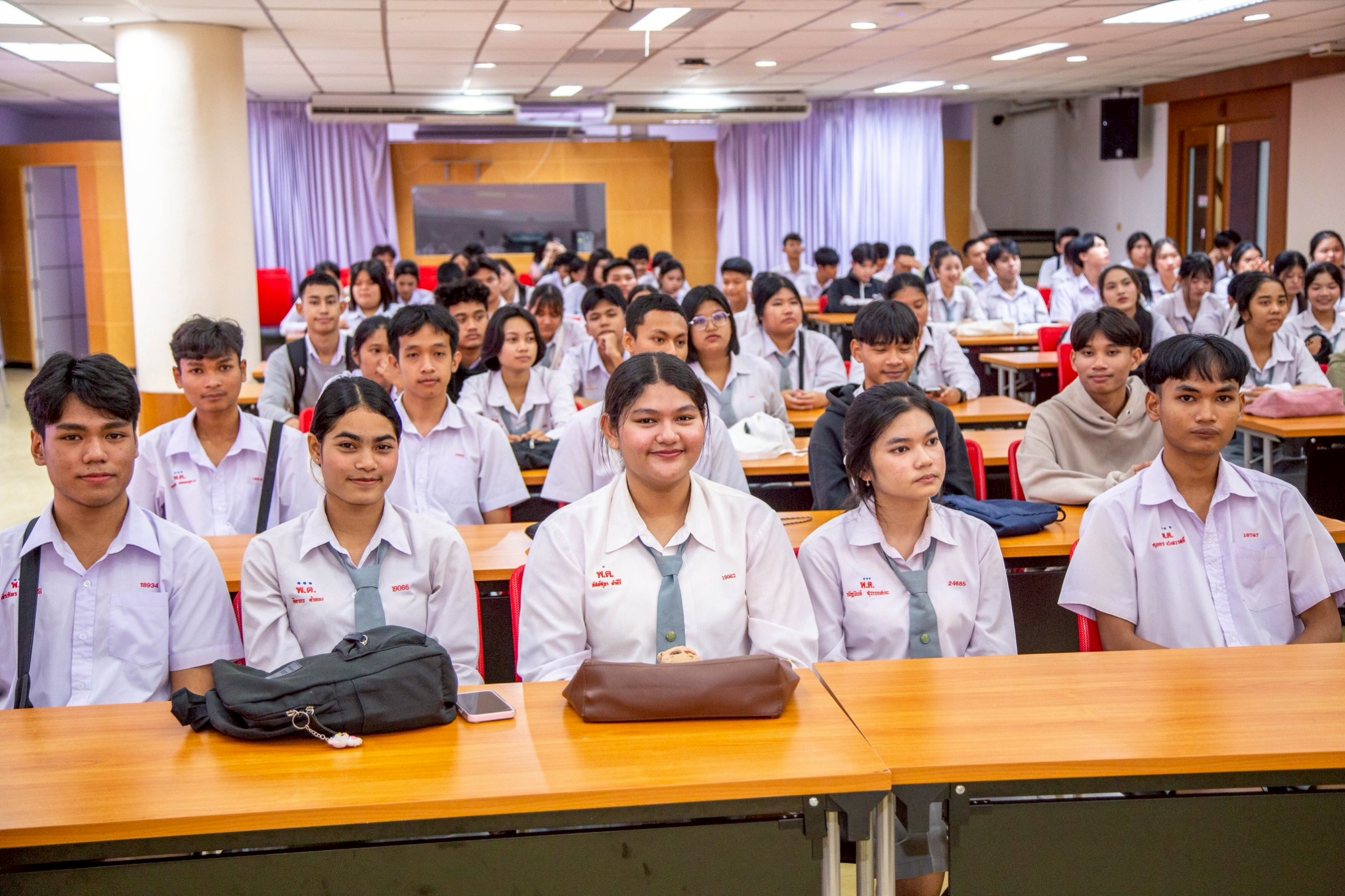 เมื่อวันที่ 30 กันยายน 2568 คณะครูและนักเรียนโรงเรียนพะตงวิทยามูลนิธิ ตำบลพะตง อำเภอหาดใหญ่ จังหวัดสงขลา จำนวน 107 คน เดินทางมาทัศนศึกษาและเยี่ยมชมมหาวิทยาลัยทักษิณ พร้อมรับฟังการแนะแนวการศึกษาต่อในระดับอุดมศึกษา ณ ห้องประชุมใหญ่ ชั้น 2 สถาบันทรัพยากรการเรียนรู้และเทคโนโลยีดิจิทัล มหาวิทยาลัยทักษิณ วิทยาเขตสงขลา โดยมี อาจารย์ปฐมภพ อ่อนอุ่น ผู้ช่วยคณบดีฝ่ายพัฒนาสมรรถนะผู้ประกอบการและวิเทศสัมพันธ์ วิทยาลัยการจัดการเพื่อการพัฒนา กล่าวต้อนรับ