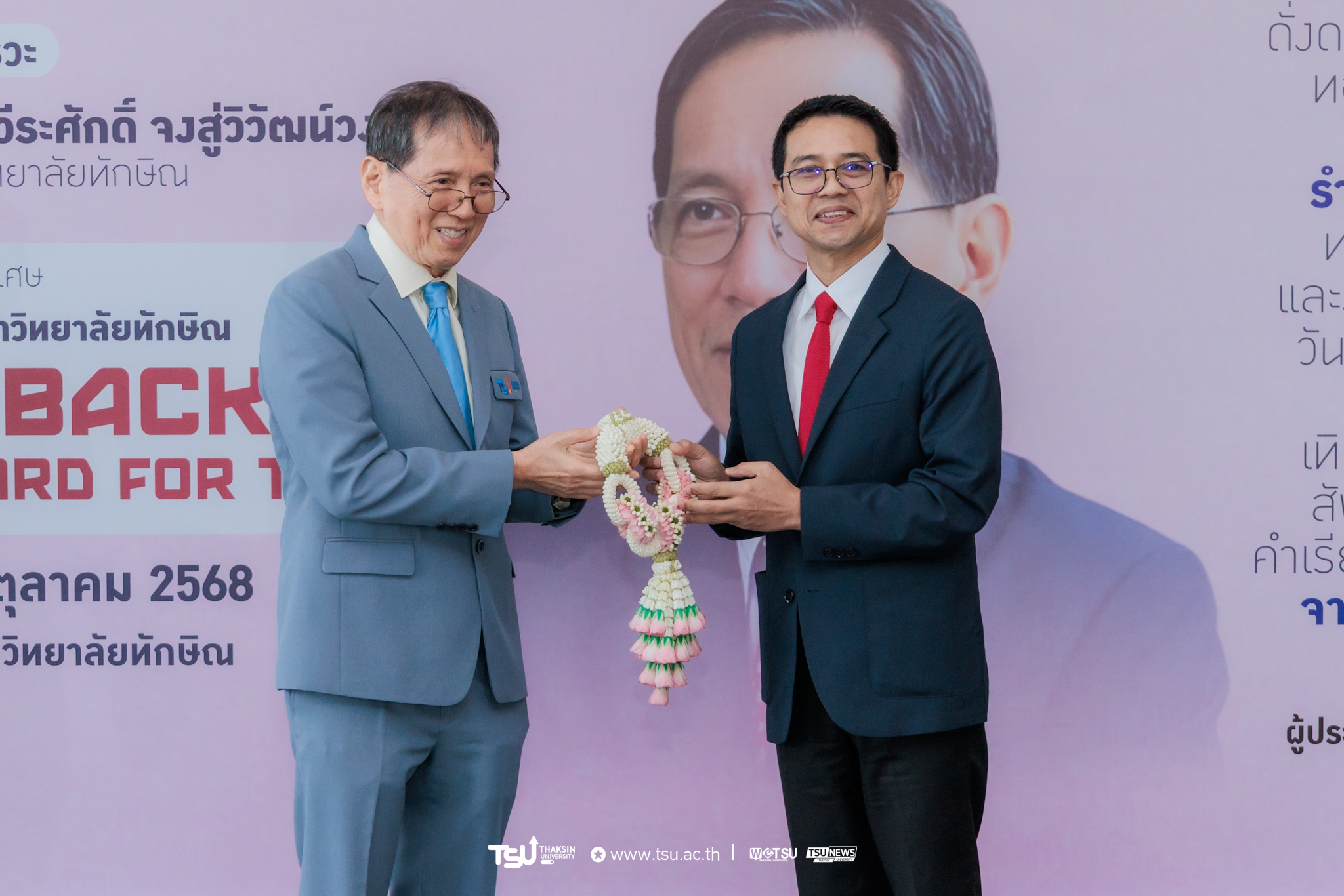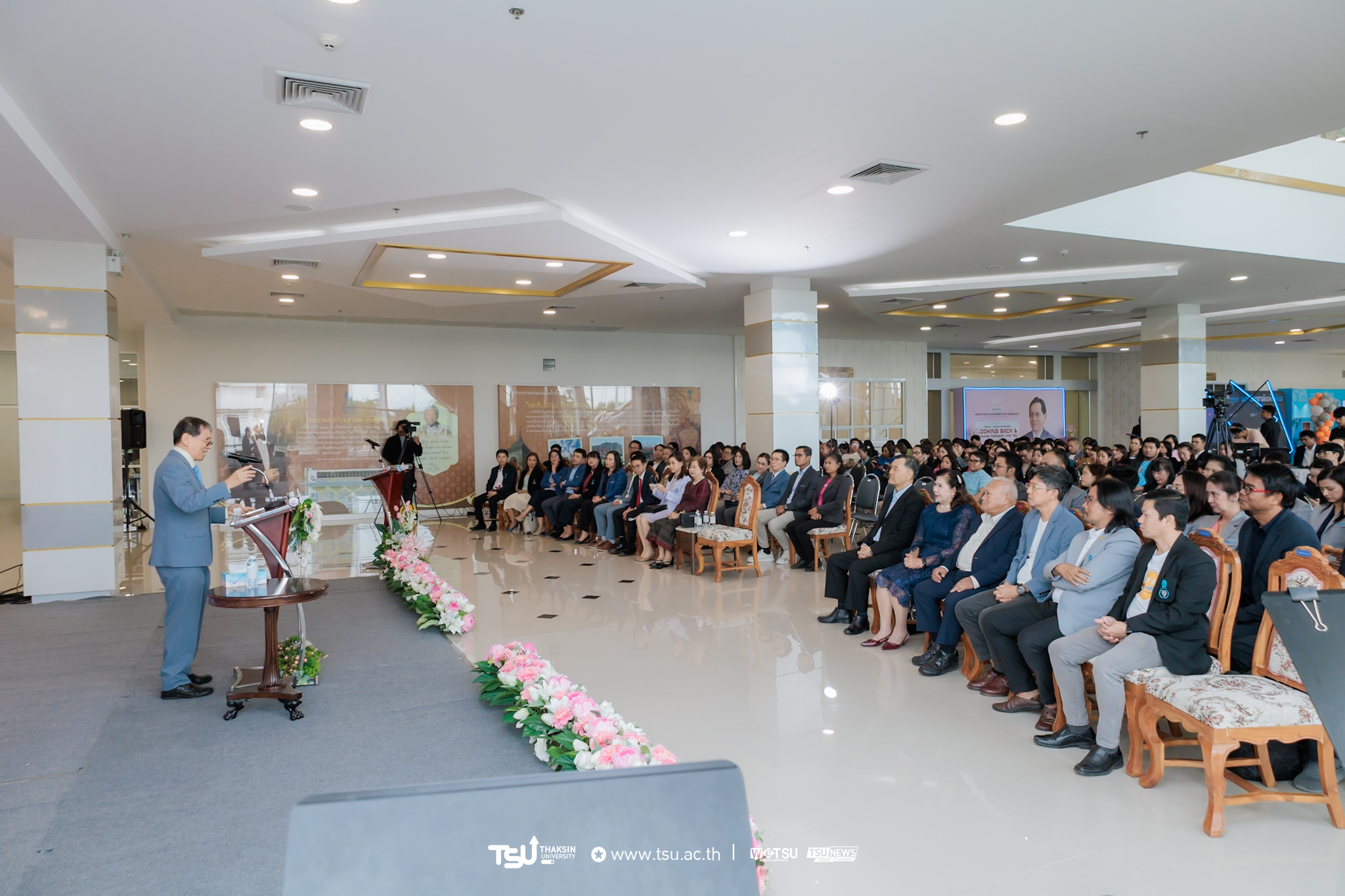 บรรยากาศของงานเปี่ยมด้วยความอ่อนโยนและศรัทธา แสดงถึงความผูกพันของผู้คนที่ร่วมสร้างมหาวิทยาลัยแห่งนี้ให้เติบโตบนพื้นฐานของความดีงามและความรู้ และยังเป็นอีกหนึ่งช่วงเวลาแห่งความทรงจำ ที่ส่องประกายด้วยแสงทองแห่งความกตัญญูและความภาคภูมิใจของชาวมหาวิทยาลัยทักษิณ