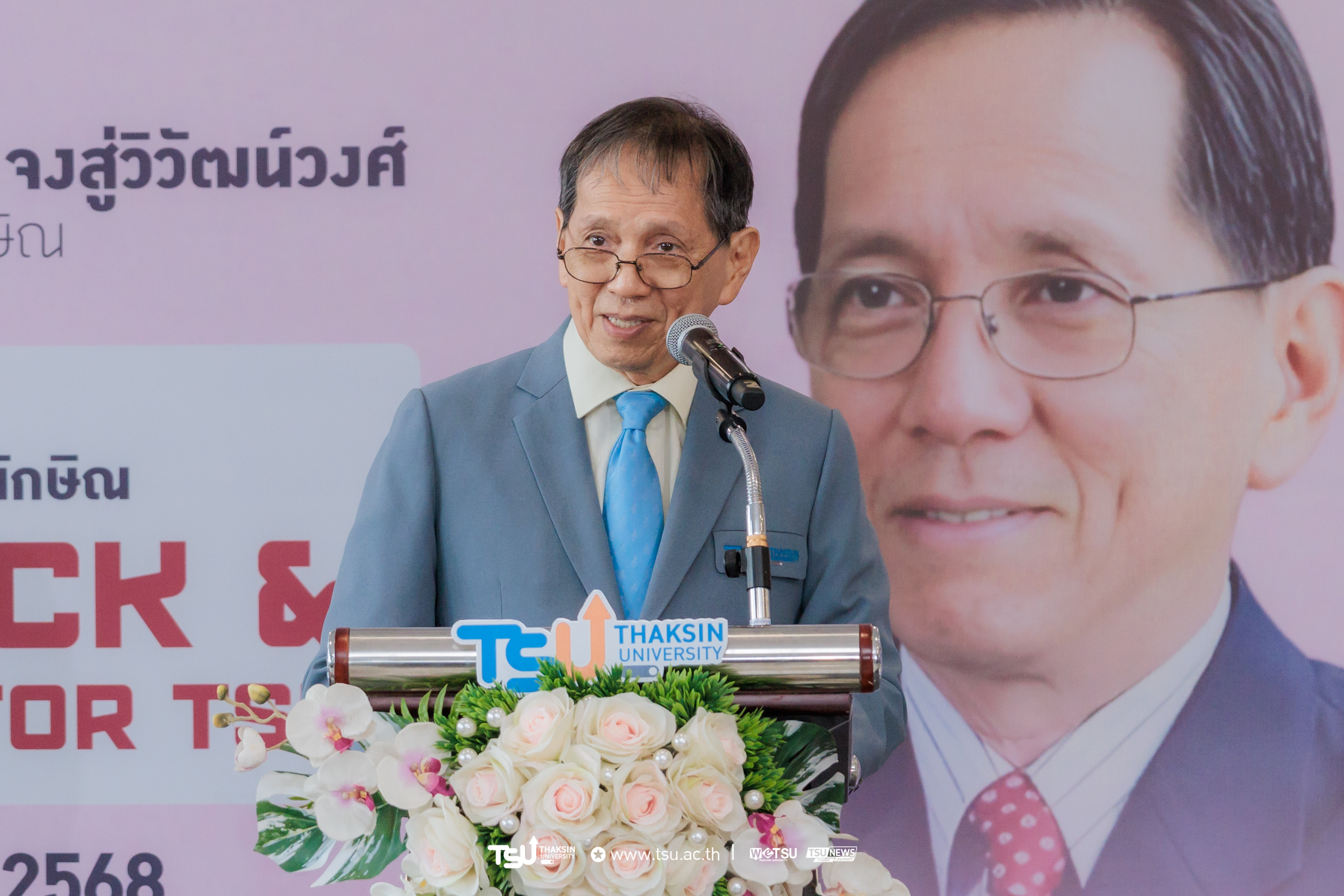 มหาวิทยาลัยทักษิณจัดงาน “แสงทองแห่งศรัทธา มุทิตาคาราวะ” เพื่อเชิดชูเกียรติและแสดงมุทิตาจิตแด่ ศาสตราจารย์ ดร.นายแพทย์วีระศักดิ์ จงสู่วิวัฒน์วงศ์ นายกสภามหาวิทยาลัยทักษิณ ในโอกาสครบวาระการดำรงตำแหน่ง ท่ามกลางบรรยากาศแห่งความอบอุ่น ศรัทธา และความกตัญญูกตเวทีจากคณาจารย์ บุคลากร และศิษย์เก่า