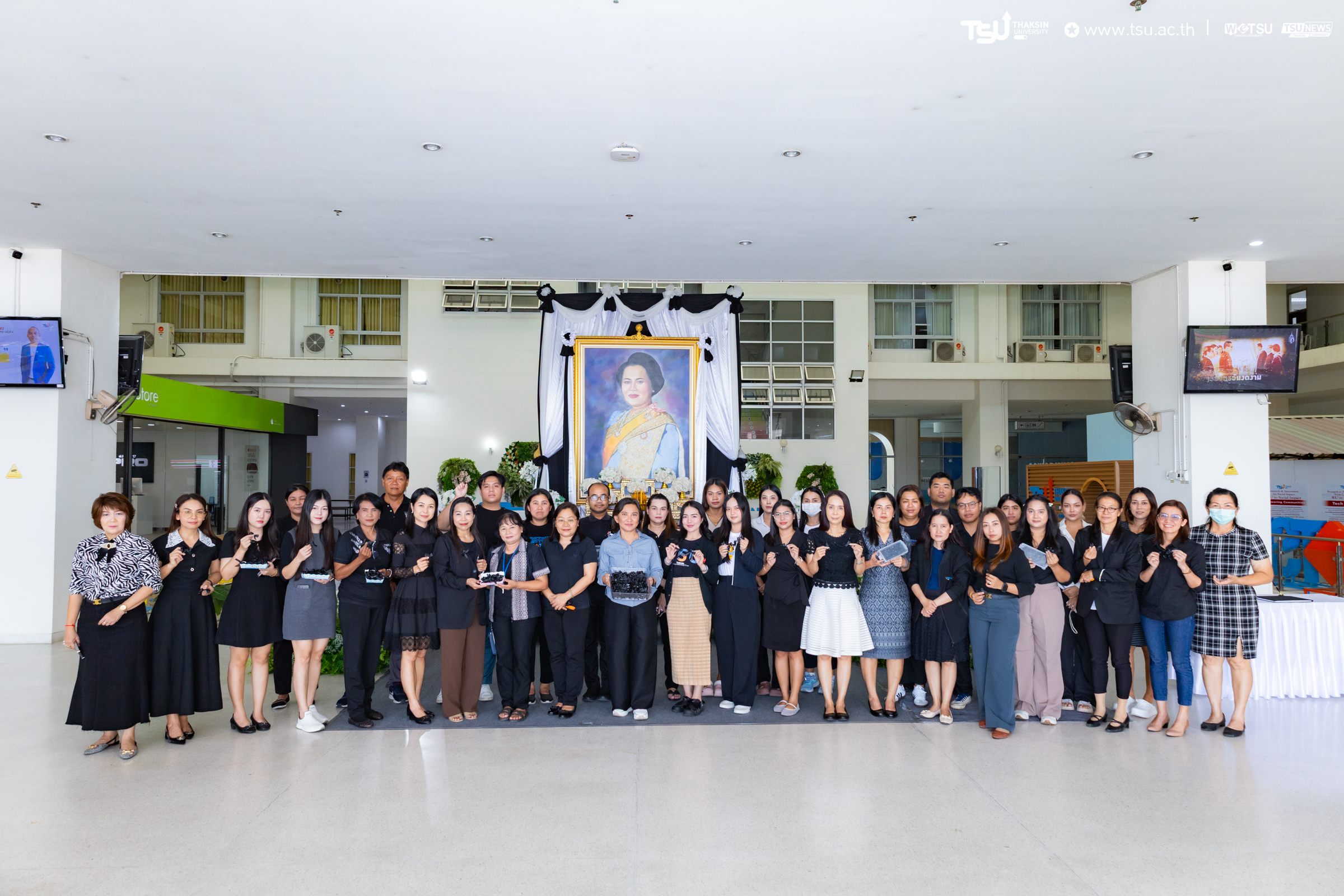 วันที่ 6 พฤศจิกายน 2568 สำนักงานมหาวิทยาลัย มหาวิทยาลัยทักษิณ จัดกิจกรรม “ผลิตโบว์สีดำถวายความอาลัย แด่สมเด็จพระนางเจ้าสิริกิติ์ พระบรมราชินีนาถ พระบรมราชชนนีพันปีหลวง” เพื่อแสดงความไว้อาลัยและน้อมรำลึกในพระมหากรุณาธิคุณ โดยมีบุคลากรเข้าร่วมโครงการจำนวน 60 คน แบ่งเป็น วิทยาเขตสงขลา 30 คน และวิทยาเขตพัทลุง 30 คน