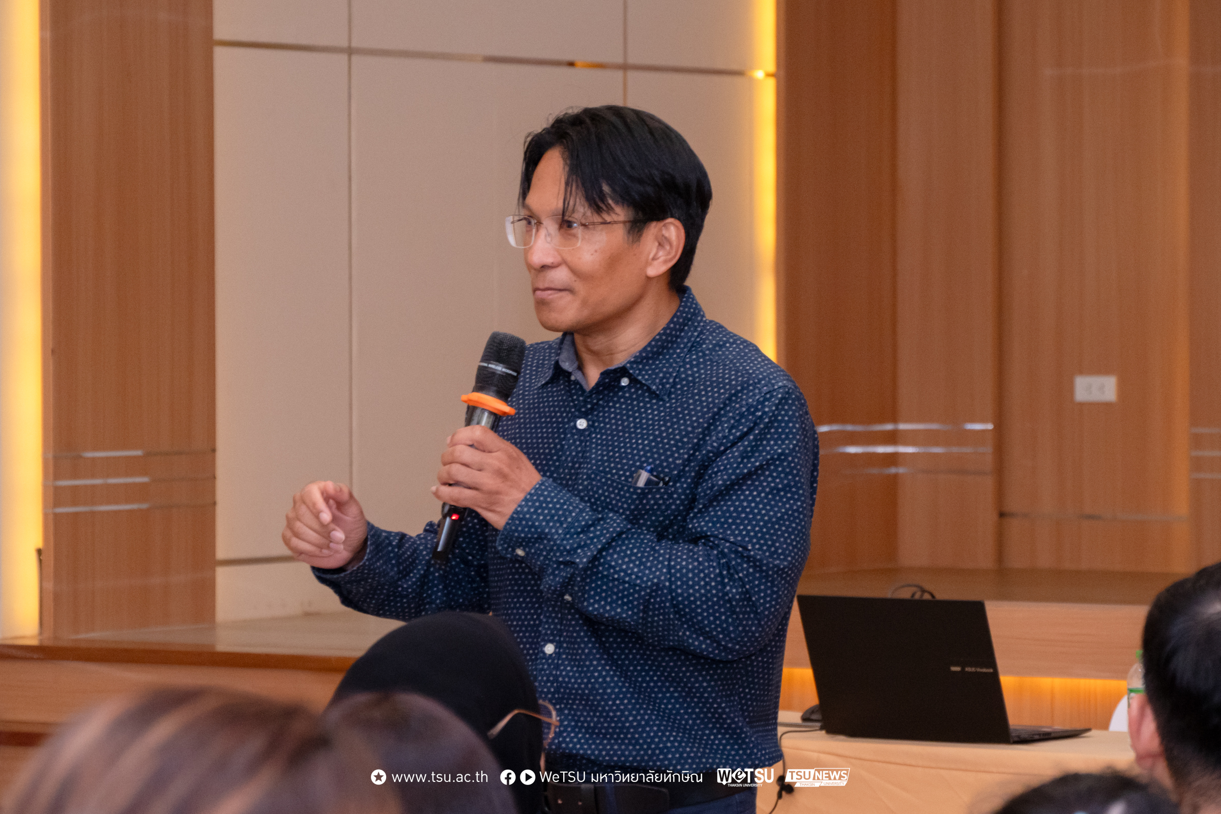 รองศาสตราจารย์ ดร.ณฐพงศ์ จิตรนิรัตน์ อธิการบดีมหาวิทยาลัยทักษิณ ได้กล่าวถึง “12 คานงัดแห่งการเติบโต” ซึ่งเป็นแนวทางสำคัญในการพัฒนาและขับเคลื่อนองค์กร สู่เป้าหมายของการเป็น “มหาวิทยาลัยนวัตกรรมสังคมระดับแนวหน้าของประเทศ ภายในปี 2570” ในการบรรยายหัวข้อ “ร่วมสร้างอนาคตมหาวิทยาลัยทักษิณ”