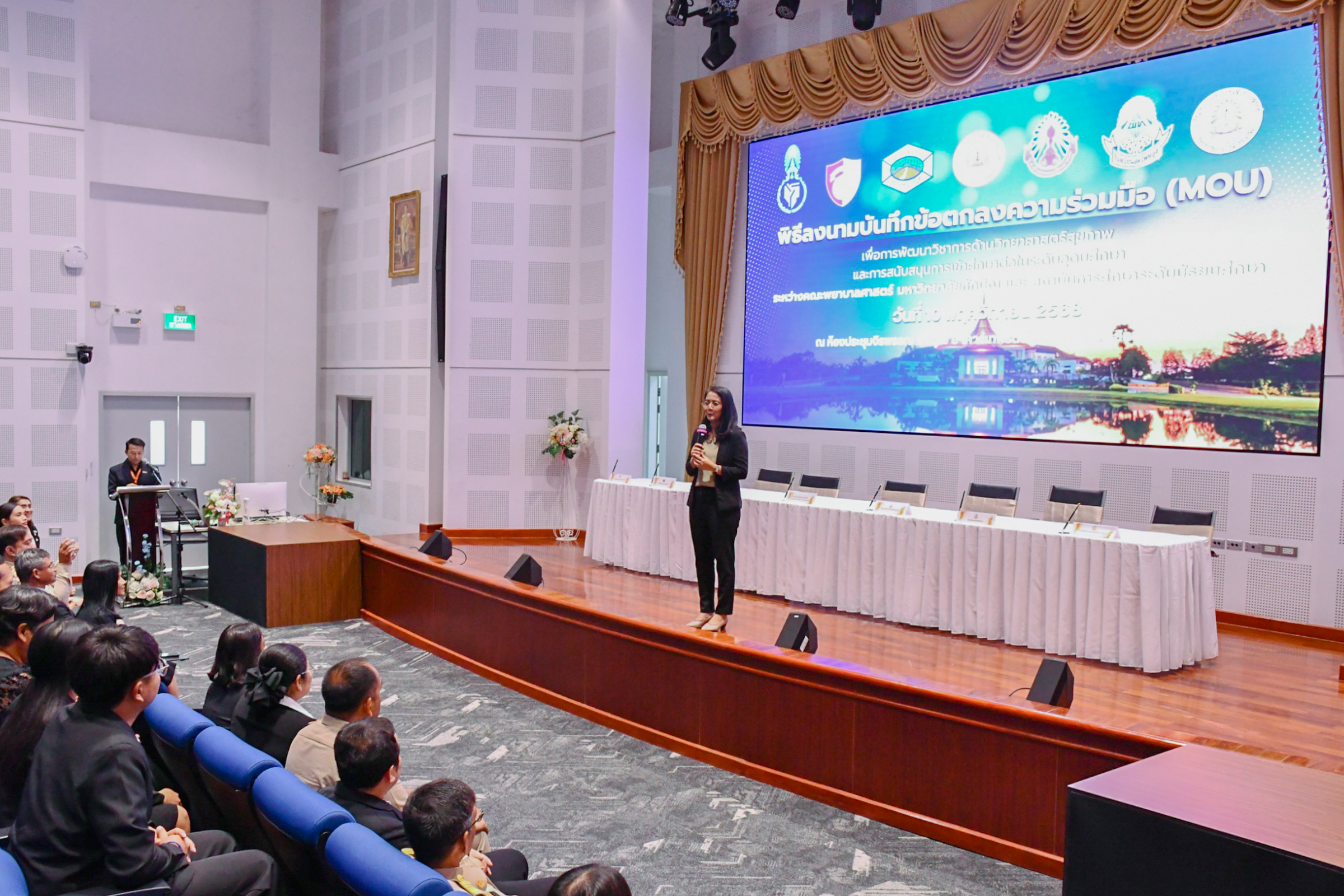 ในการนี้ได้รับเกียรติจาก ผู้ช่วยศาสตราจารย์ ดร.ธัญญา พันธ์ฤทธิ์ดำ รองอธิการบดีวิทยาเขตพัทลุง กล่าวต้อนรับผู้เข้าร่วมงานอย่างอบอุ่น และ ผู้ช่วยศาสตราจารย์ ดร.หทัยรัตน์ แสงจันทร์ คณบดีคณะพยาบาลศาสตร์ กล่าวถึงวัตถุประสงค์ของการลงนามความร่วมมือในครั้งนี้ว่า