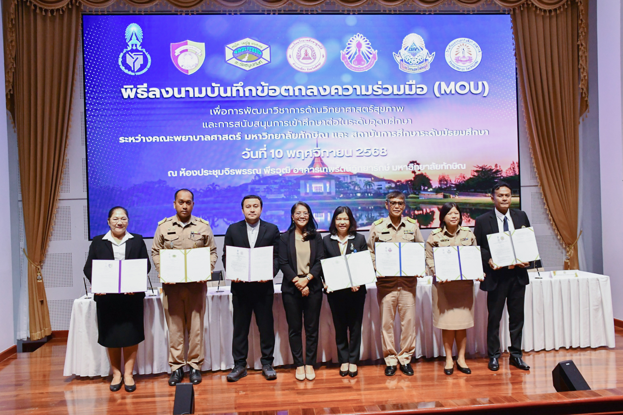 คณะพยาบาลศาสตร์ มหาวิทยาลัยทักษิณ เดินหน้าสร้างเครือข่ายความร่วมมือทางการศึกษา ลงนามบันทึกข้อตกลงความร่วมมือ (MOU) กับ 6 โรงเรียนระดับมัธยมศึกษา เพื่อพัฒนาการเรียนรู้ด้านวิทยาศาสตร์สุขภาพ และส่งเสริมโอกาสการศึกษาต่อระดับอุดมศึกษาในสาขาพยาบาลศาสตร์อย่างยั่งยืน