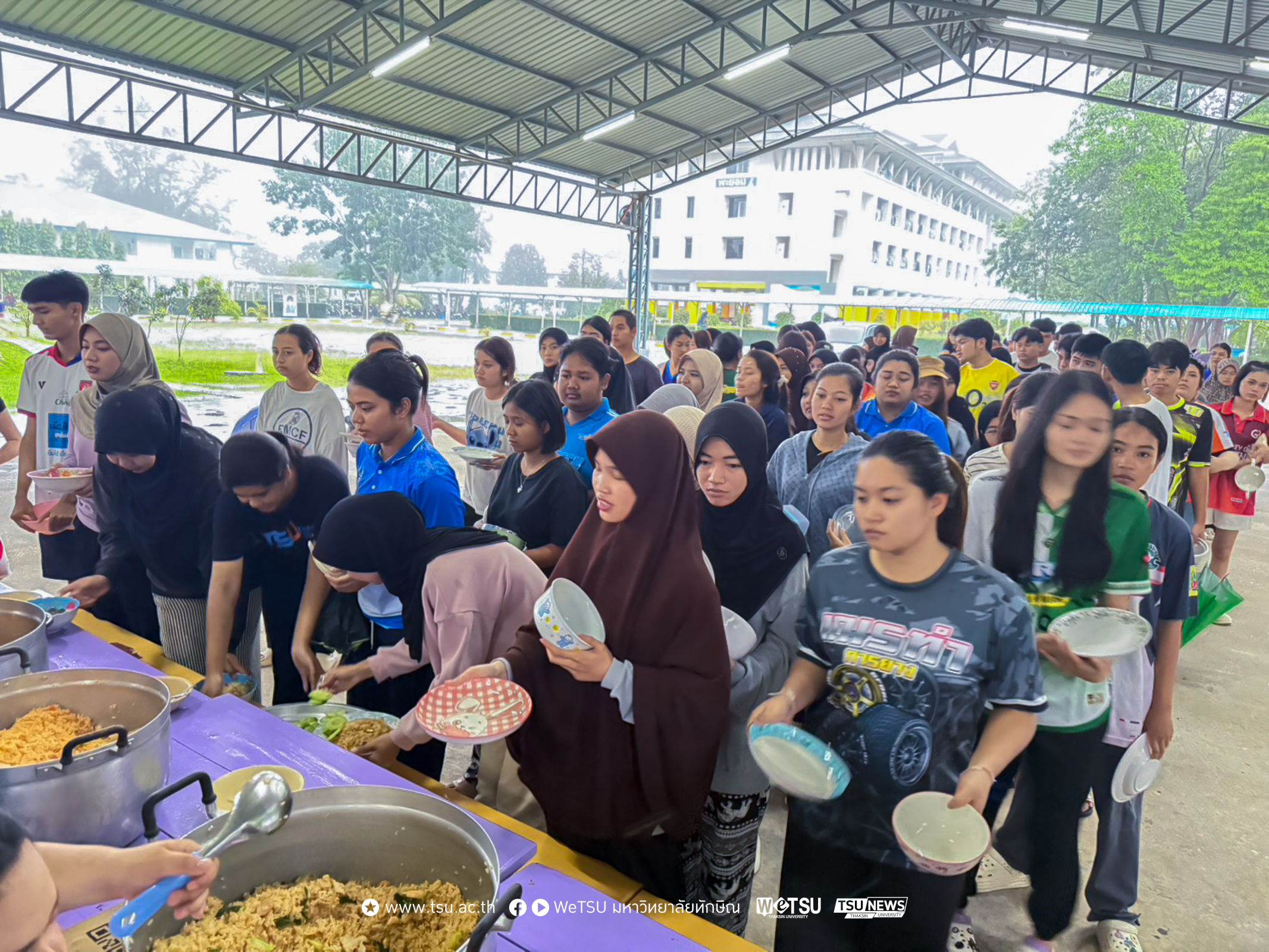 ฝ่ายกิจการนิสิต มหาวิทยาลัยทักษิณ วิทยาเขตพัทลุง เปิด “ครัวน้ำท่วม” จัดเลี้ยงอาหารแก่นิสิต บรรเทาความเดือดร้อนที่ได้รับผลกระทบจากฝนตกหนักและน้ำท่วมฉับพลัน ลดความกังวลของผู้ปกครอง มอบเมนูอาหารอุ่นใจให้บริการต่อเนื่องทุกวันจนกว่าสถานการณ์ฝนตกหนักและน้ำท่วมจะคลี่คลายกลับสู่ภาวะปกติ