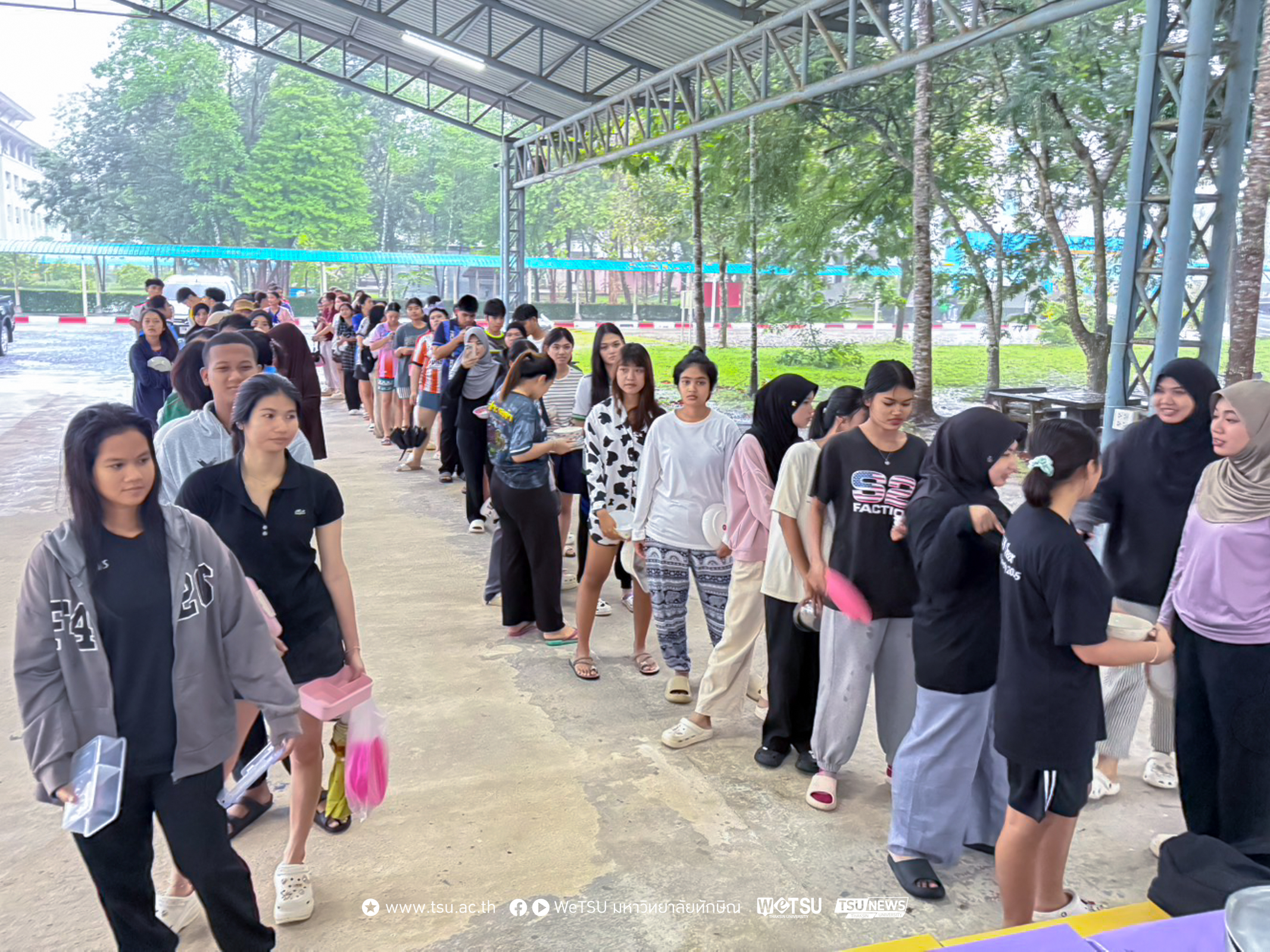 ฝ่ายกิจการนิสิต มหาวิทยาลัยทักษิณ วิทยาเขตพัทลุง เปิดให้บริการ “ครัวน้ำท่วม” เพื่อช่วยเหลือนิสิตที่ได้รับผลกระทบจากฝนตกหนักและสถานการณ์น้ำท่วมฉับพลัน หลังมรสุมตะวันออกเฉียงเหนือพัดปกคลุมอ่าวไทยและภาคใต้ตอนบนอย่างต่อเนื่อง ประกอบกับคลื่นกระแสลมฝ่ายตะวันออกที่เคลื่อนตัวเข้าปกคลุม ทำให้เกิดฝนตกหนักอย่างต่อเนื่องในหลายพื้นที่ของจังหวัดพัทลุง