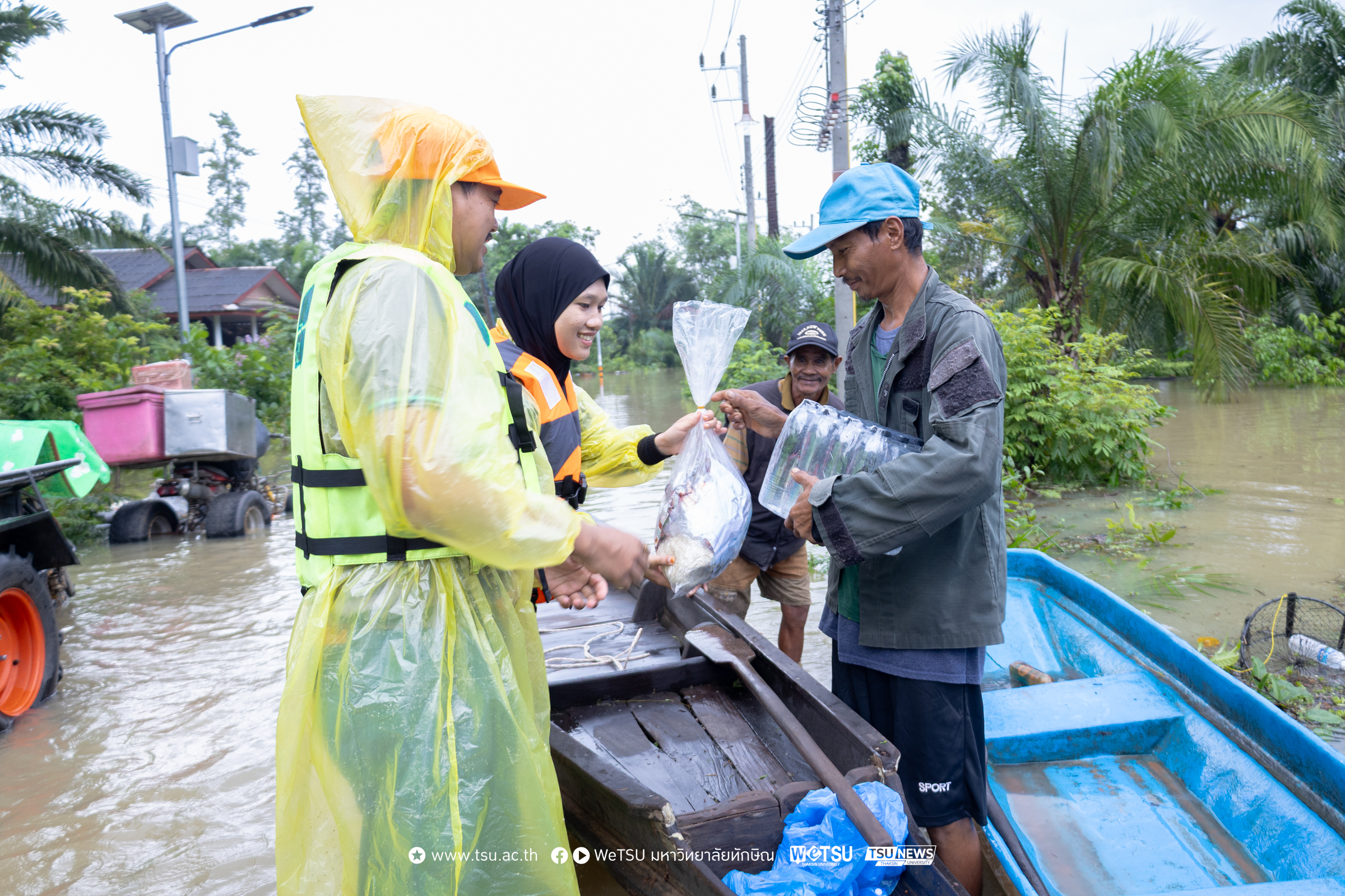 สถานการณ์น้ำท่วมยังทำให้ประชาชนจำนวนมากขาดแคลนน้ำดื่มสะอาด อาหารแห้ง ยารักษาโรค และอุปกรณ์ยังชีพพื้นฐาน เจ้าหน้าที่และจิตอาสาจากหลายหน่วยงานยังคงต้องเร่งระดมกำลังเข้าไปช่วยเหลือในพื้นที่ที่ยังเดือดร้อนและเข้าถึงยาก เพื่อบรรเทาความเดือดร้อนในทันที มหาวิทยาลัยทักษิณได้จัดทีมลงพื้นที่ช่วยเหลือประชาชน โดยมอบถุงยังชีพและน้ำดื่มสะอาดรวมมากว่า 500 ชุด ให้แก่ครอบครัวที่ได้รับผลกระทบ เป็นการส่งต่อความห่วงใยและสนับสนุนชุมชนในช่วงวิกฤติครั้งนี้