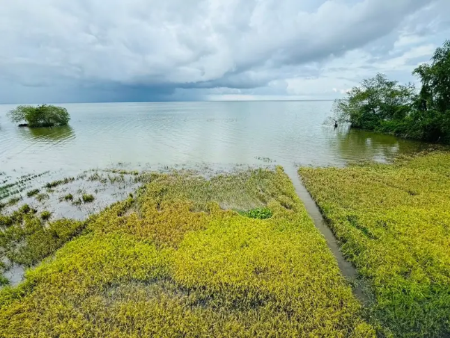 “ครั้งหนึ่งนาริมเลมีพื้นที่ปลูกกว่า 500 ไร่ แต่ด้วยข้อจำกัดของสายพันธุ์ข้าวยุคก่อนที่ไม่ทนต่อสภาพน้ำท่วมขังจากฝนตกชุก และให้ผลผลิตต่ำ ชาวบ้านจึงจำใจละทิ้งพื้นที่ทำกิน กระทั่งปัจจุบันเหลือนาริมเลเพียง 63 ไร่เท่านั้น” คุณสายัณ รักดำ ประธานวิสาหกิจชุมชน กลุ่มทำนาริมเลบ้านปากประ ตำบลลำปำ จังหวัดพัทลุง กล่าว