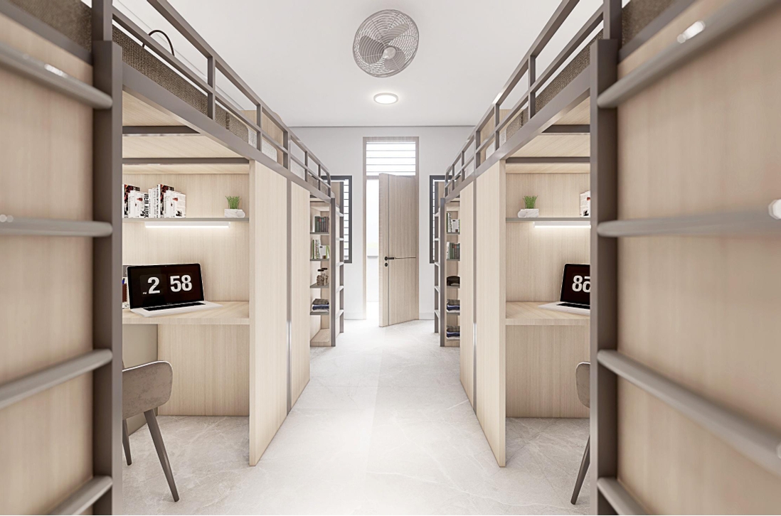 ห้องพักแต่ละห้องมีห้องนอน ห้องน้ำในตัว ระเบียง และเฟอร์นิเจอร์ครบครัน ได้แก่ เตียง โต๊ะอ่านหนังสือ เก้าอี้ และตู้เสื้อผ้า